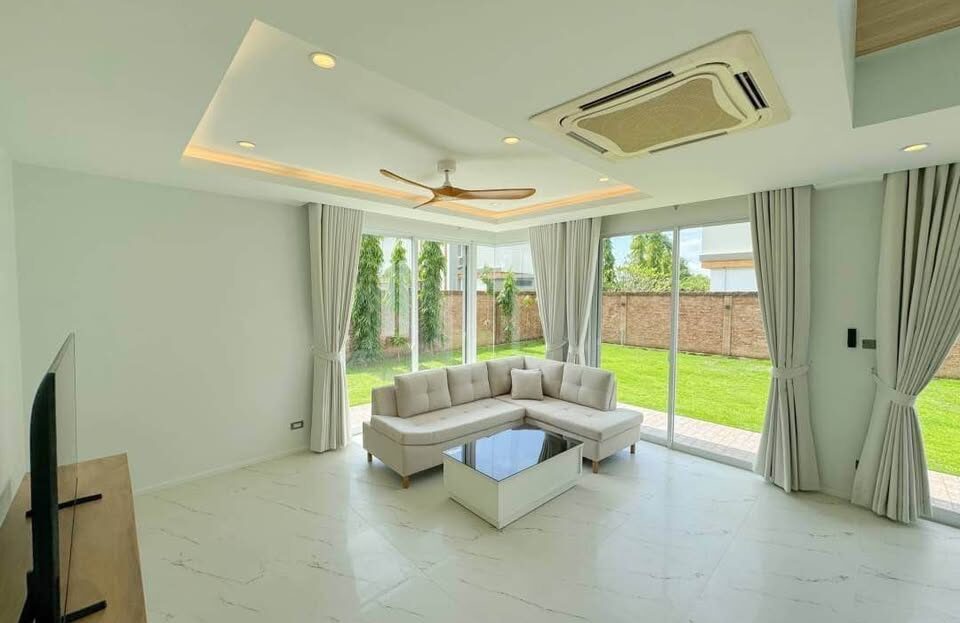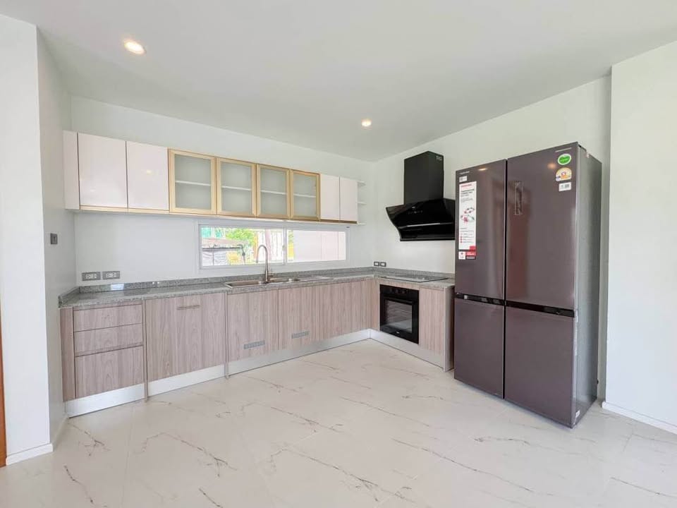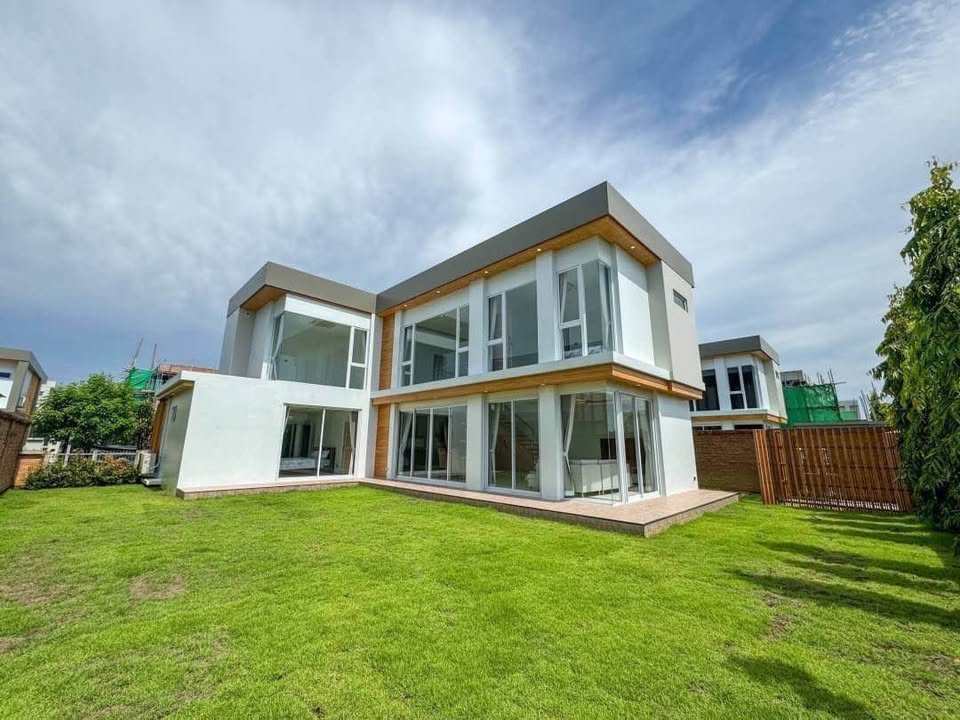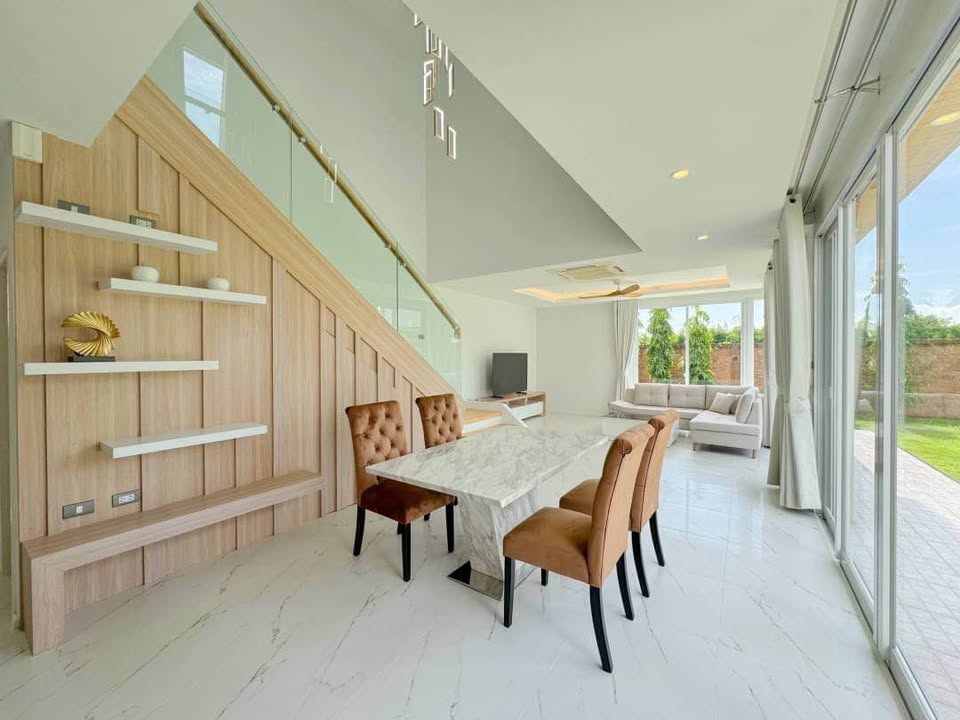 A move-in-ready family pool villa in San Kamphaeng, Chiang Mai. The home offers 4 bedrooms, 5 bathrooms, bright living and dining areas, a well-equipped kitchen with oven, storage room, and on-site parking. Set on 110 sq.w. (approx. 440 sqm) of land with 256 sqm of usable area, and fully furnished for comfortable living.