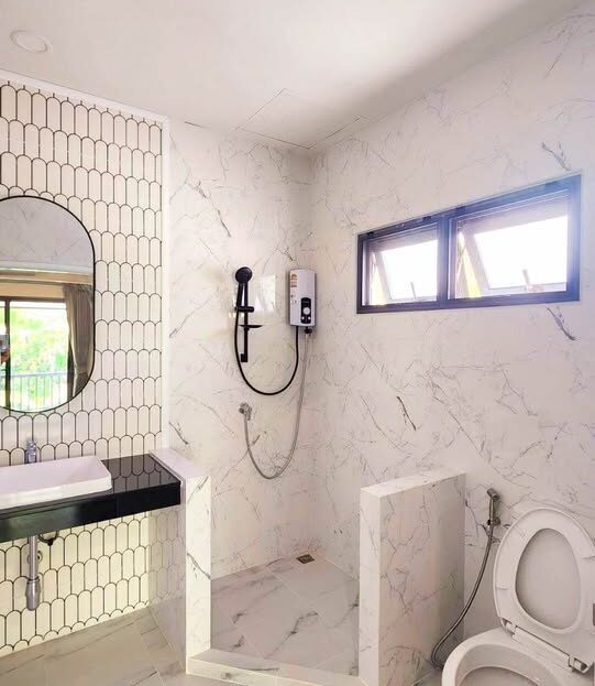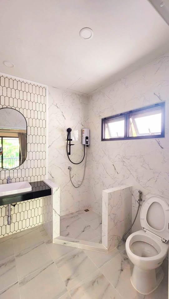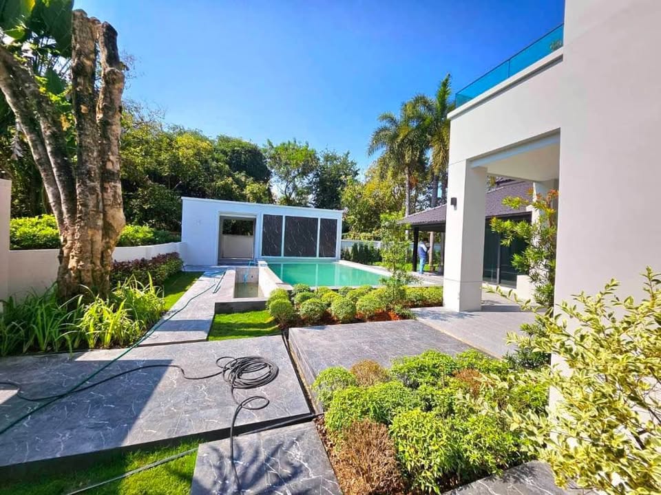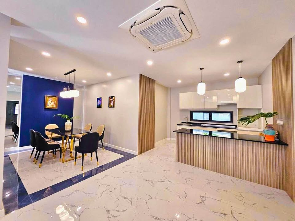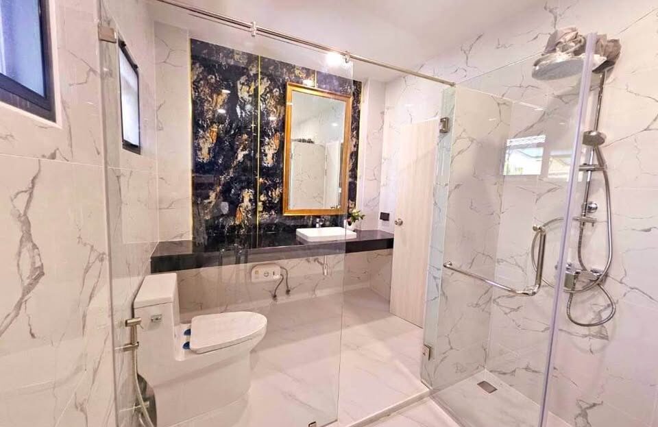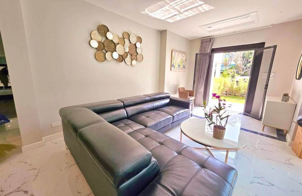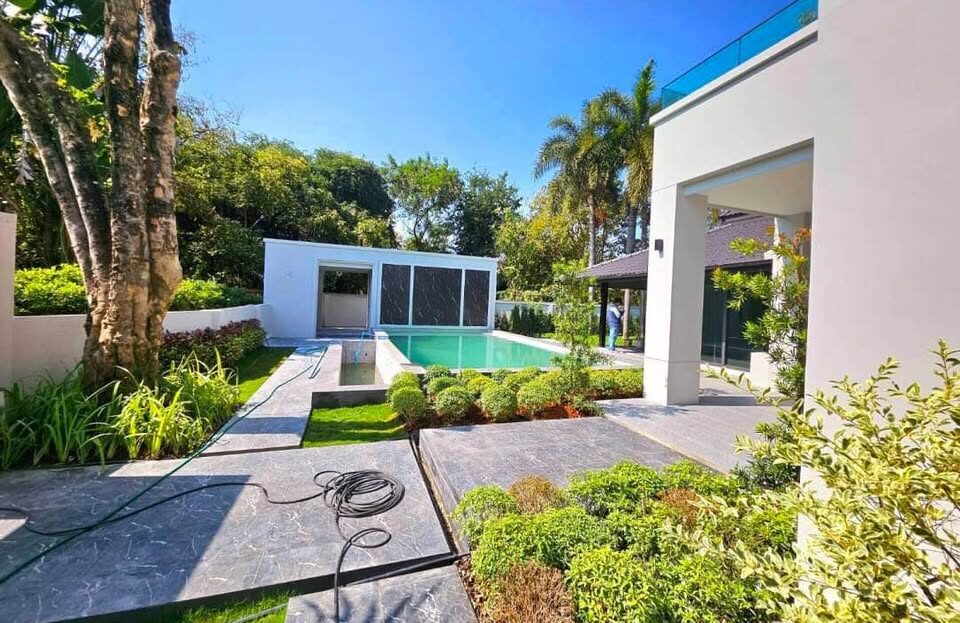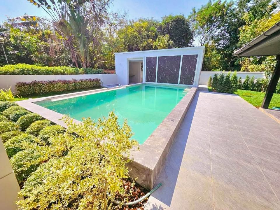 A spacious family pool villa in the Lanna Pinery Home gated community, Hang Dong. Offering 480 sq.m of usable space on a 143 sq.wah (approx. 572 sq.m) plot, this 5-bedroom, 7-bathroom home features an 8 x 4 m saltwater pool, an outdoor entertaining area, a full kitchen with pantry, dedicated dining and living rooms, and a maid’s room. Residents enjoy excellent communal facilities including a playground, swimming pool, tennis court, and security.
