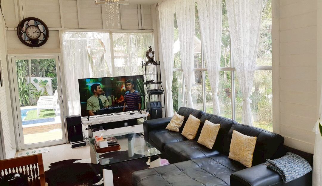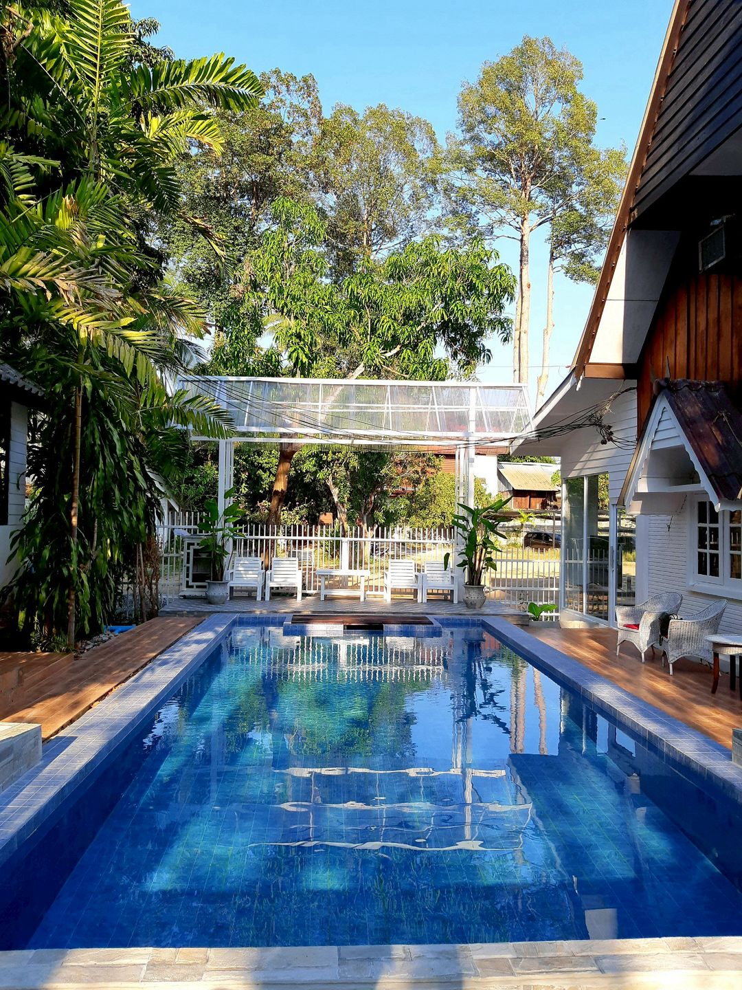 Spacious pool villa surrounded by a lush garden, featuring two living rooms and extensive on-site parking for 40+ cars. Ideal for a home office, spa, cafe, beauty clinic, or Airbnb (subject to local regulations). Conveniently located on Ton Yang Road in Saraphi, Chiang Mai, near the Kong Sai Intersection.