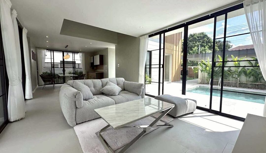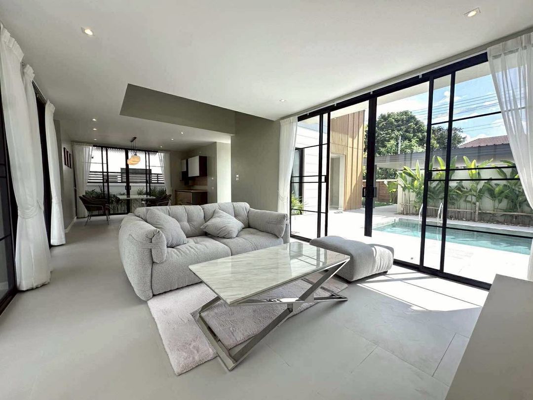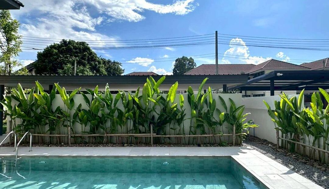 Newly built 2-storey detached pool villa on 103 sq.wah (≈412 sq.m) of land with over 305 sq.m of usable area. Includes 3 bedrooms and 4 bathrooms, all ensuite. Open backyard facing rice fields with serene Doi Suthep views and an all-day breeze. Located in the sought-after Kwan Wiang Village on the Ring Road near the Samoeng junction—quiet, secure, and convenient to international schools, the airport, and major shopping.