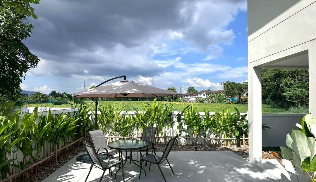 – Backyard opens to rice fields with Doi Suthep view; breezy all day