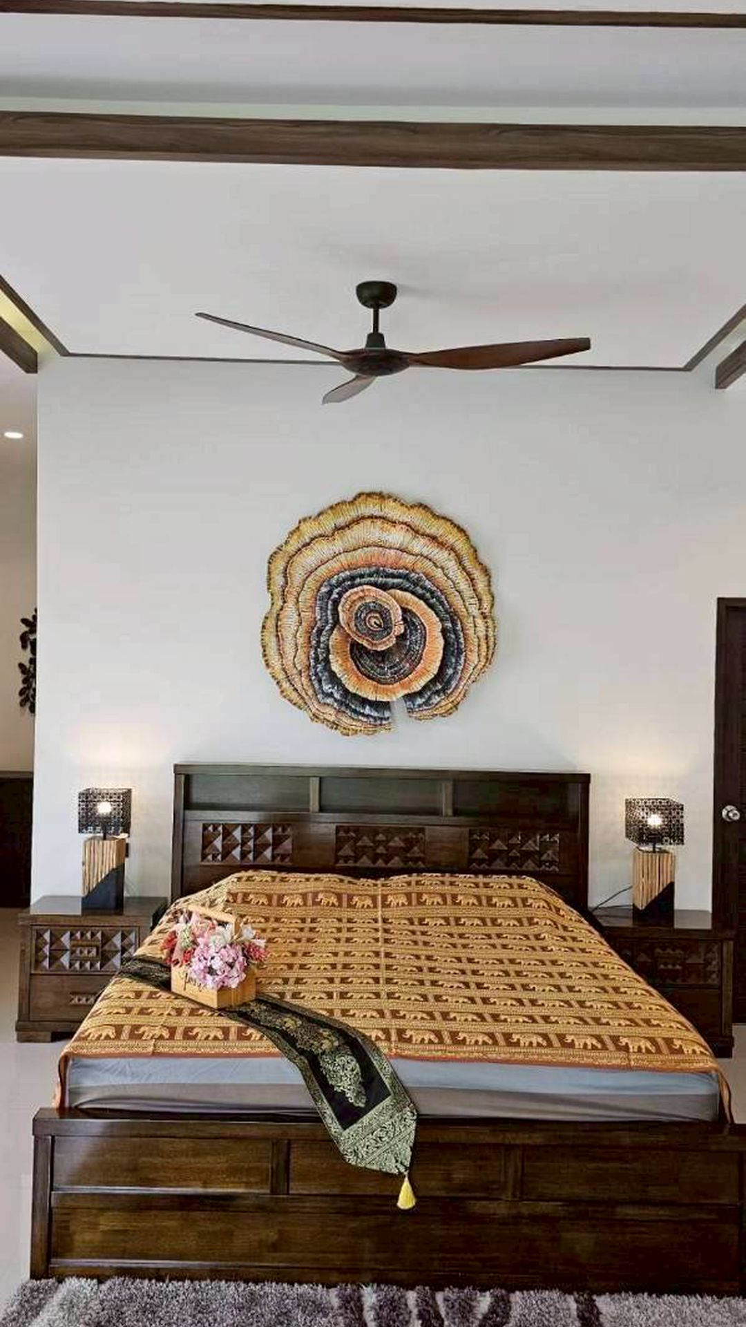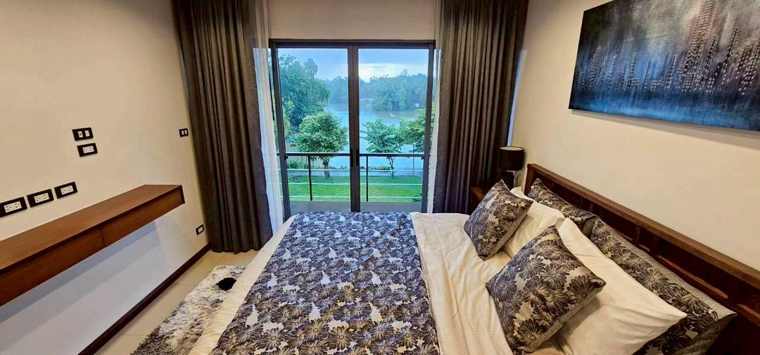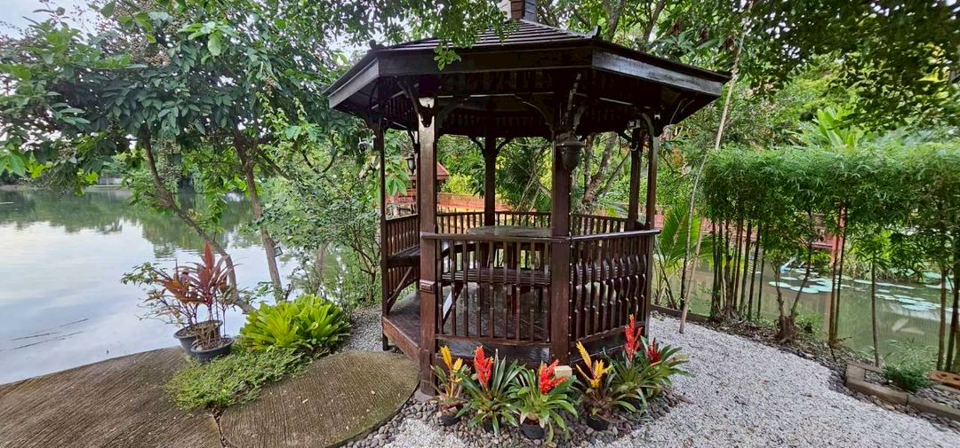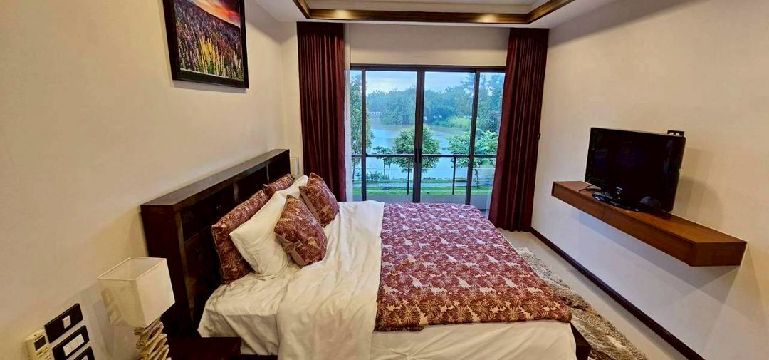 A stunning two-story villa in modern Lanna style, located in Wang Tan Village, surrounded by lush greenery and a beautiful lake. The village offers a pleasant, cool climate and excellent privacy, while being conveniently close to the city center.
