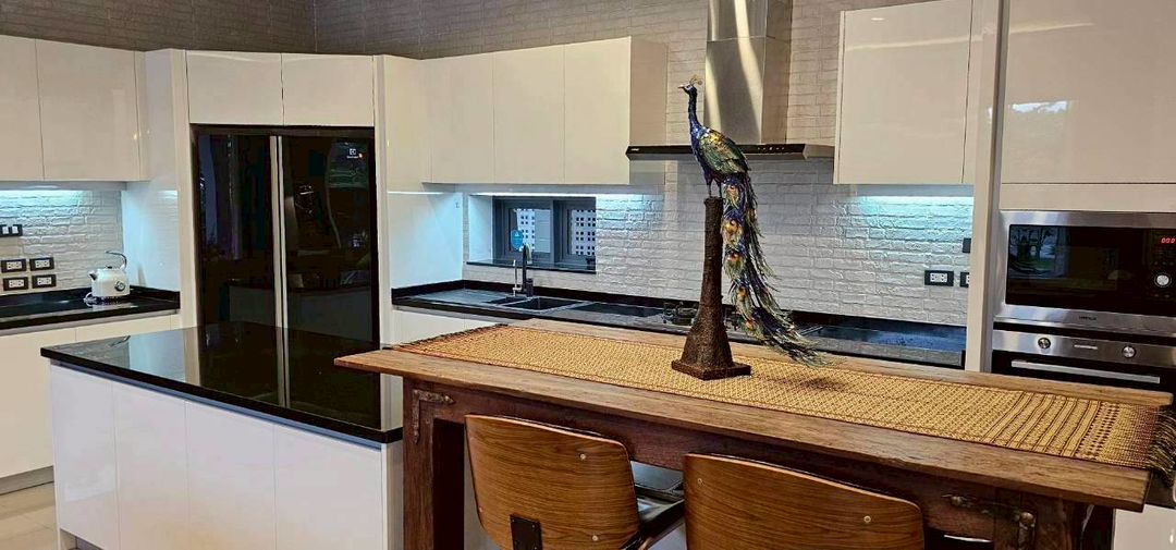 Thai kitchen with fusion-style design, genuine teakwood furniture, custom-made