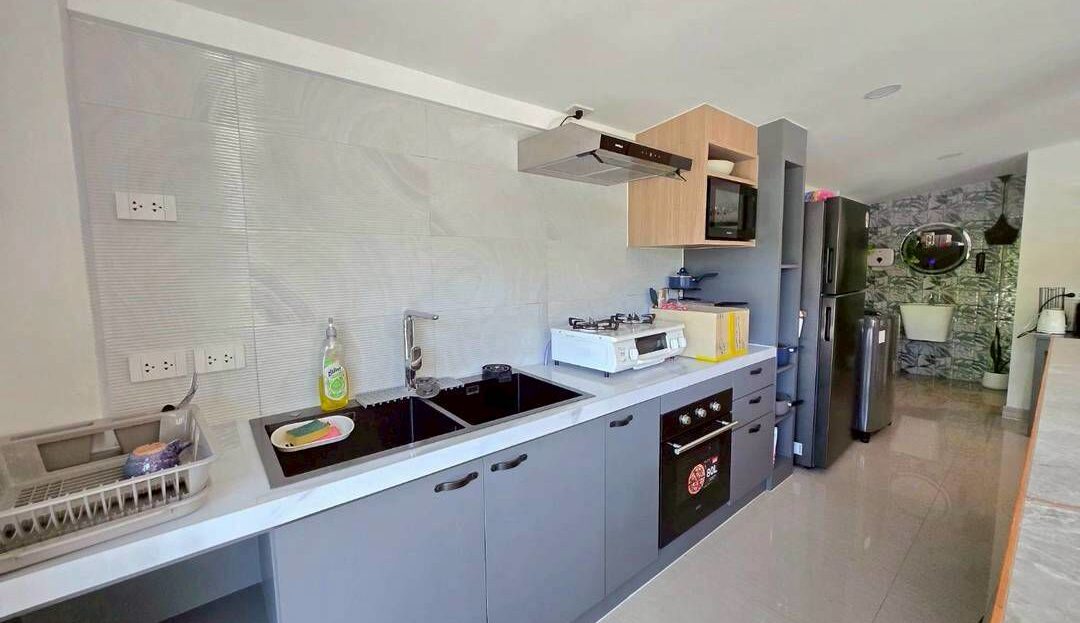 ห้องครัวพร้อมอุปกรณ์ครบชุด (เตาอบ, ไมโครเวฟ, ตู้เย็น, เครื่องครัว)
