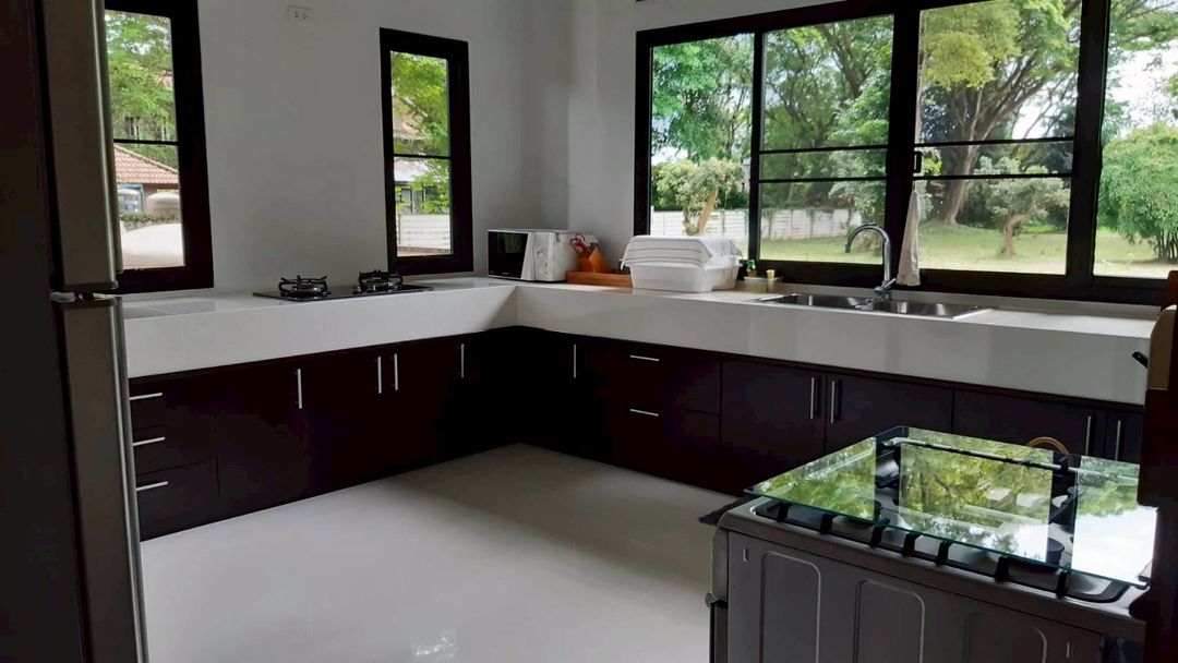 ห้องครัวกว้าง สะอาด มุมมองเห็นต้นไม้